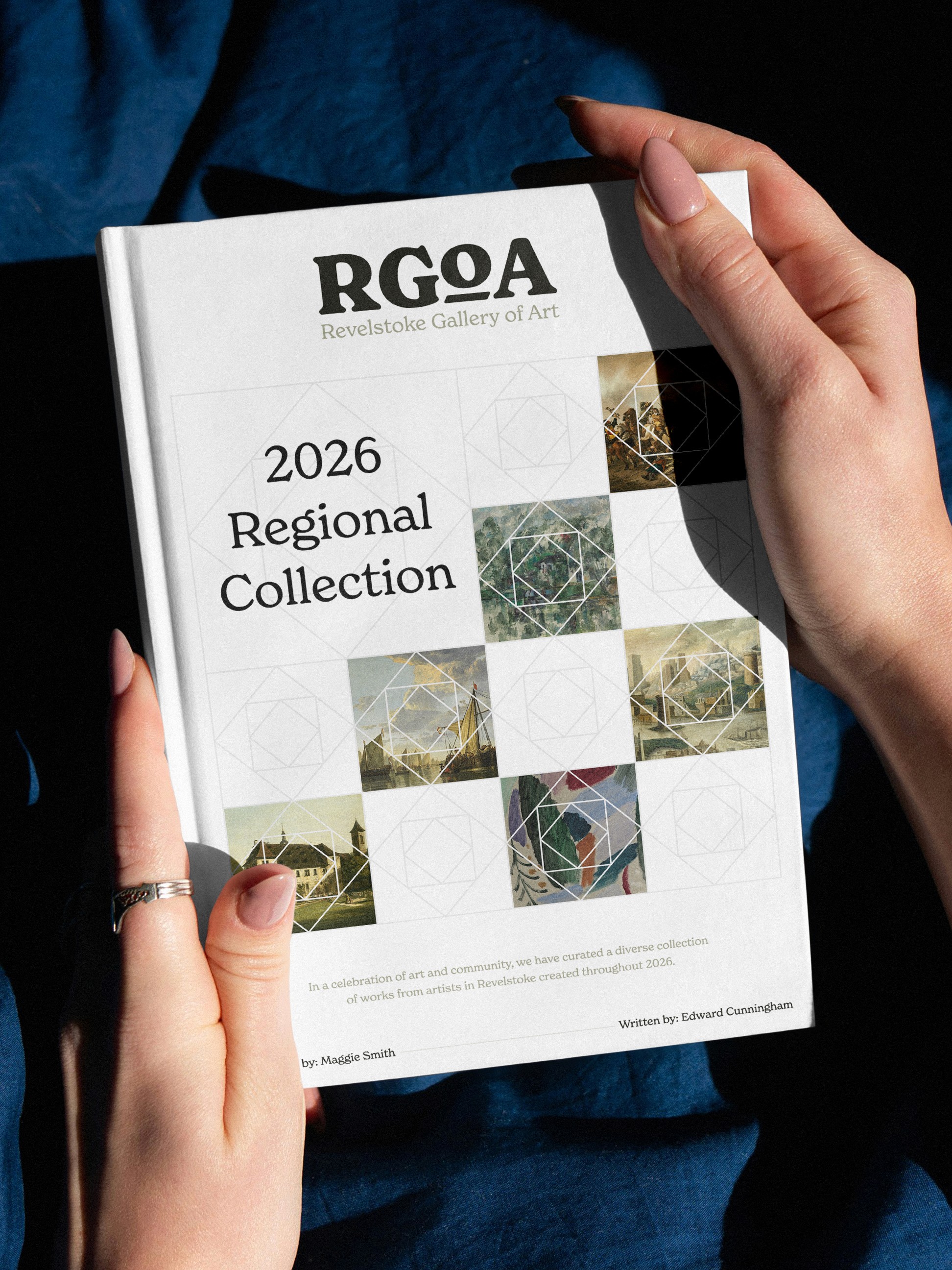 Concept for RGoA's brand direction—introducing New Spirit as the main font, bringing a familiar yet formal appeal. The quilt patch motif harkens to the communal aspects of art where different mediums and experiences can be brought together, side by side.