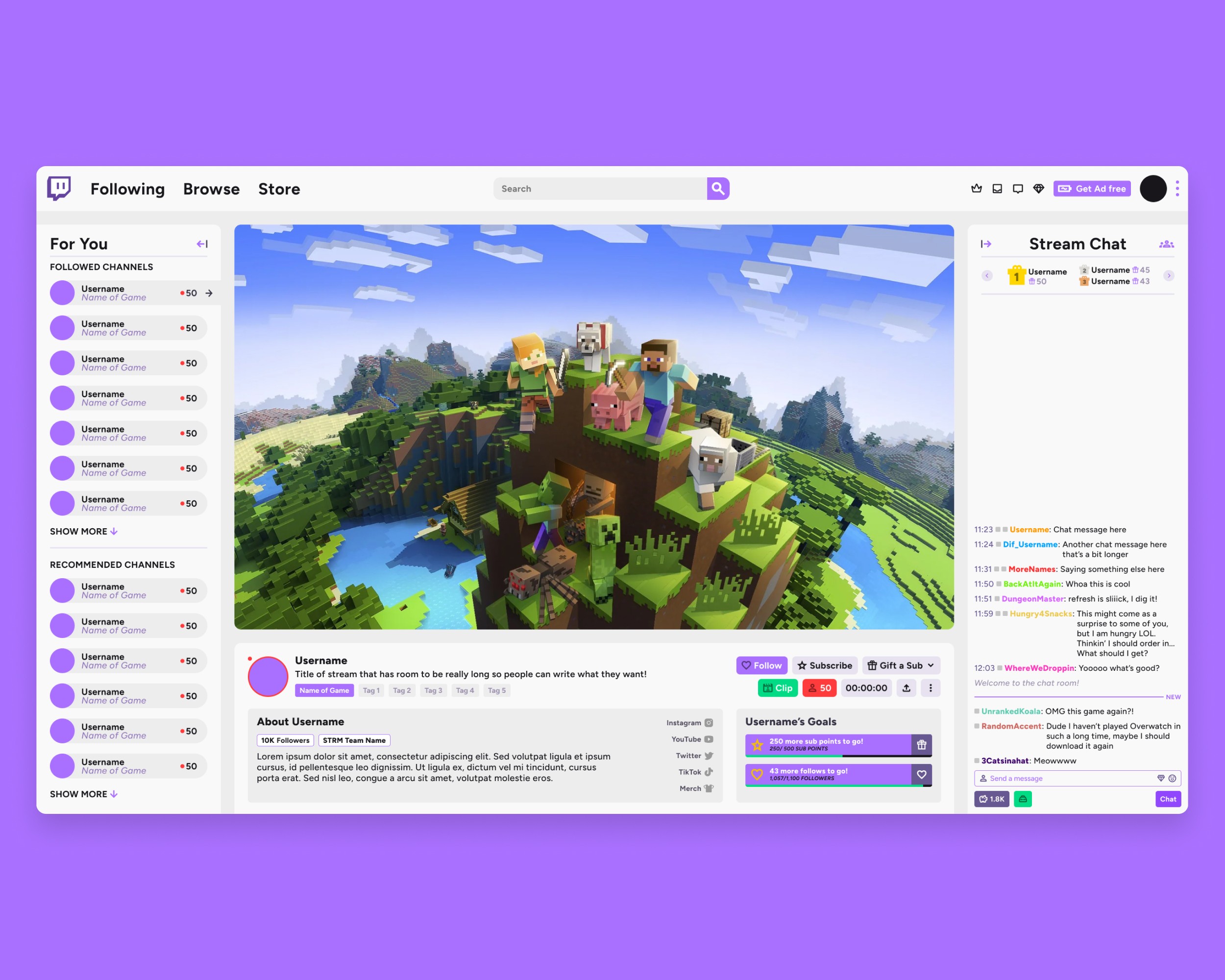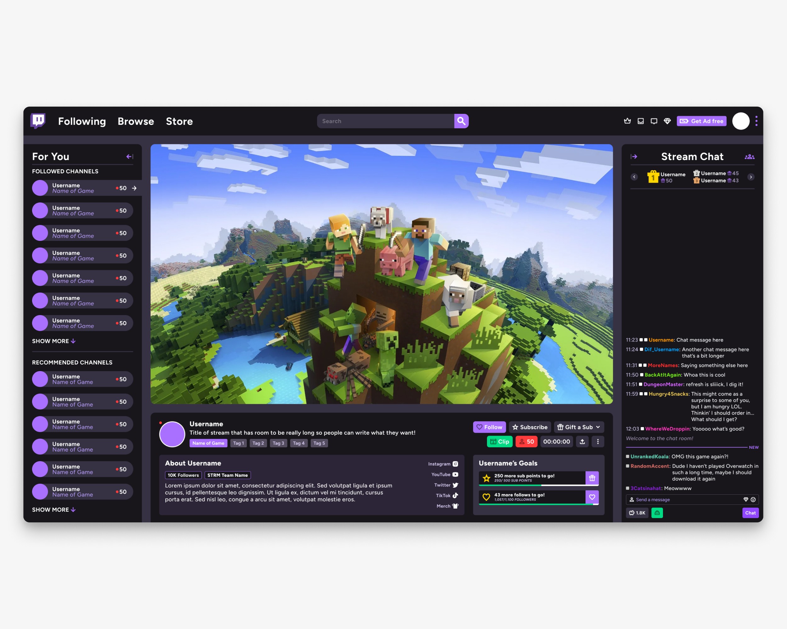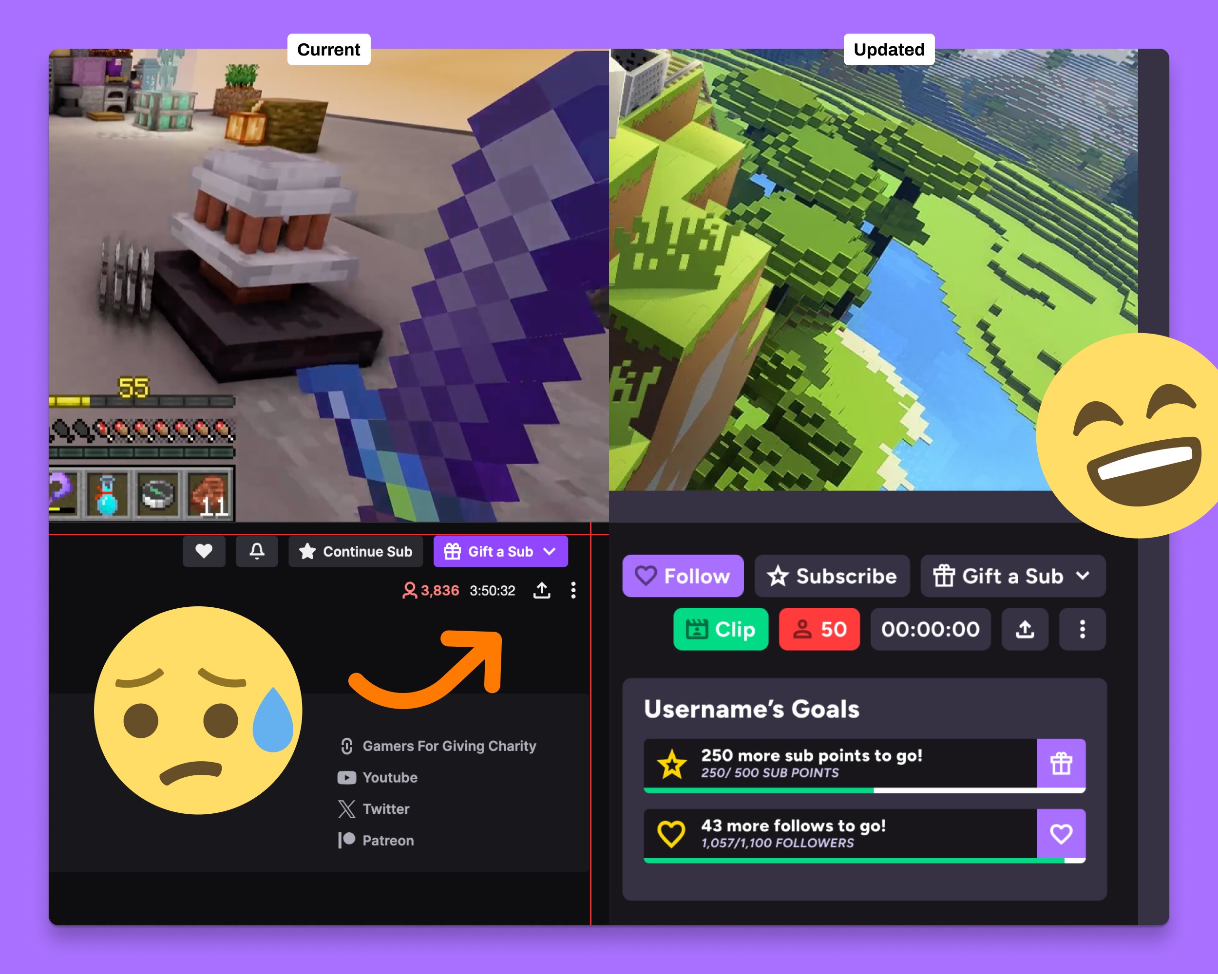 This new design is also an improvement because of how adaptable it needs to be because of all the data-bound elements. Viewer count and stream duration consistently update, and the follow & subscribe buttons change depending on your status with the stream.