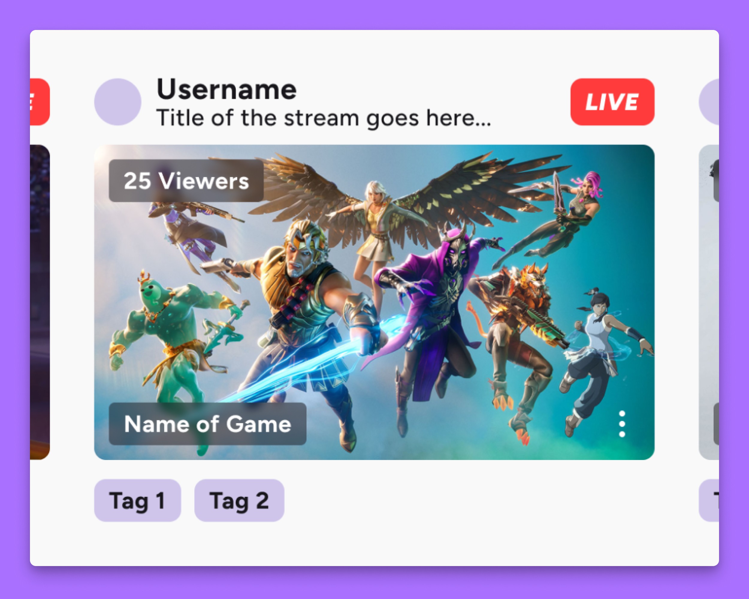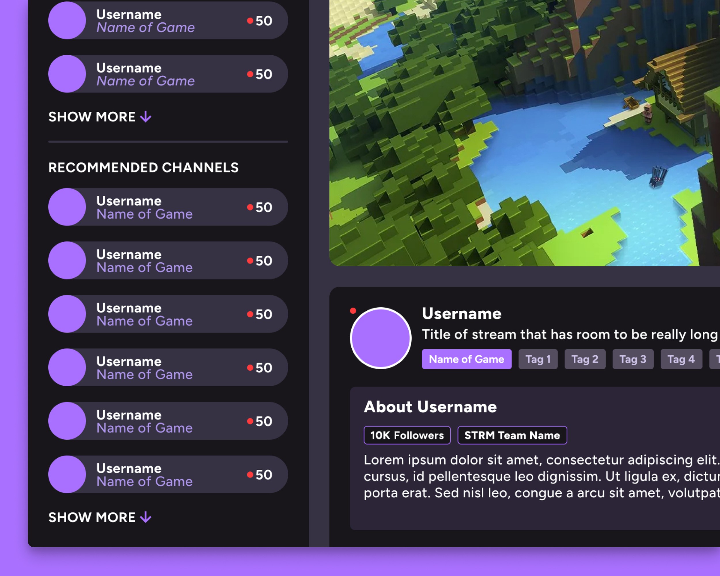 The backbone of Twitch: the stream card. It houses a bunch of essential info that needs to look good as a single card and amongst hundreds, whether on the homepage or in a game directory.
